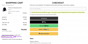 The discount code can be entered in the shopping cart, below the product list, before checkout.